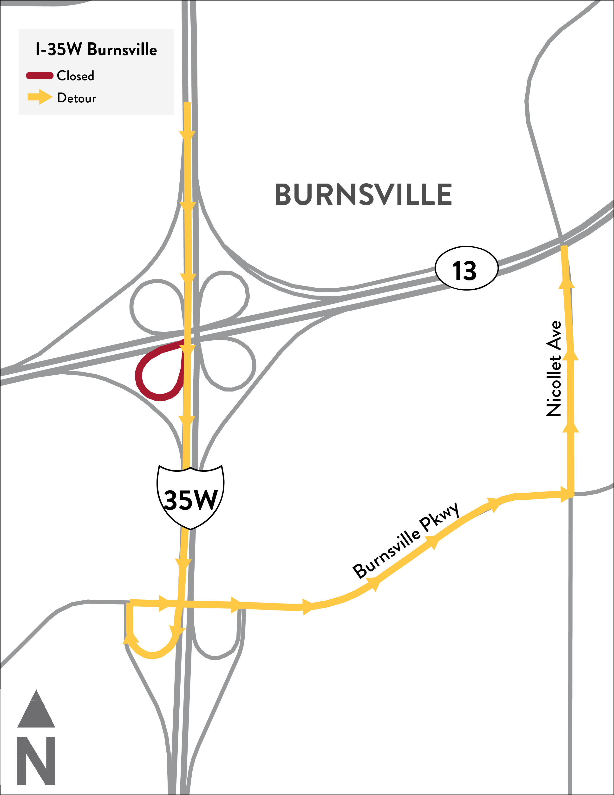 - The ramp from Burnsville Pkwy. to northbound I-35W is closed