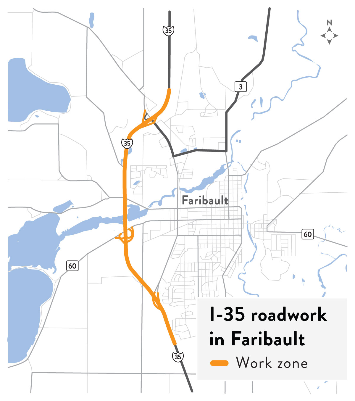 Construction took place 2023-2024 to resurface 4.6 miles of I-35 in Rice County, and improve ramps and bridges.