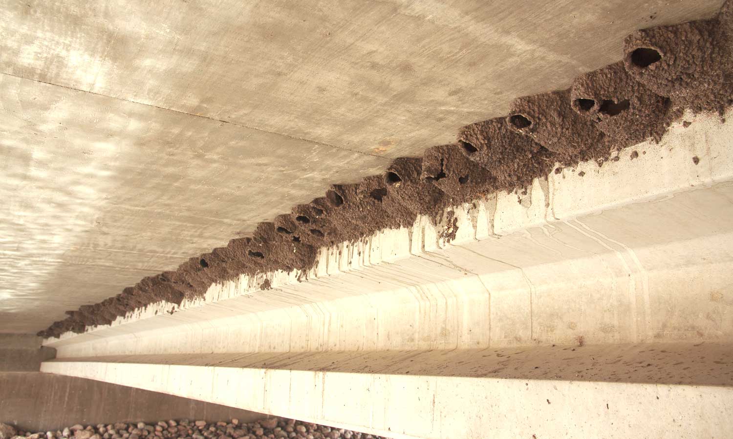 Most Minnesota birds, including the cliff swallows (Petrochelidon pyrrhonota) using this bridge as nesting habitat, are protected by state and federal regulations. MnDOT uses best practices to deter such birds from nesting on upcoming work sites. Photo by Peter Leete.