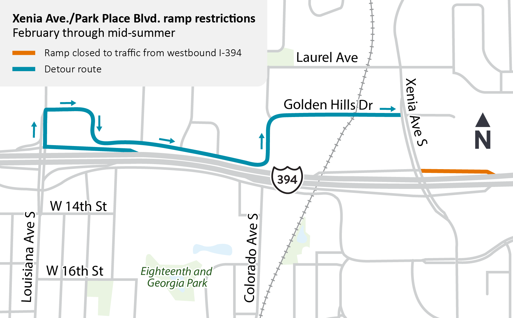 - Westbound I-394 to Park Place Blvd./Xenia Ave.
