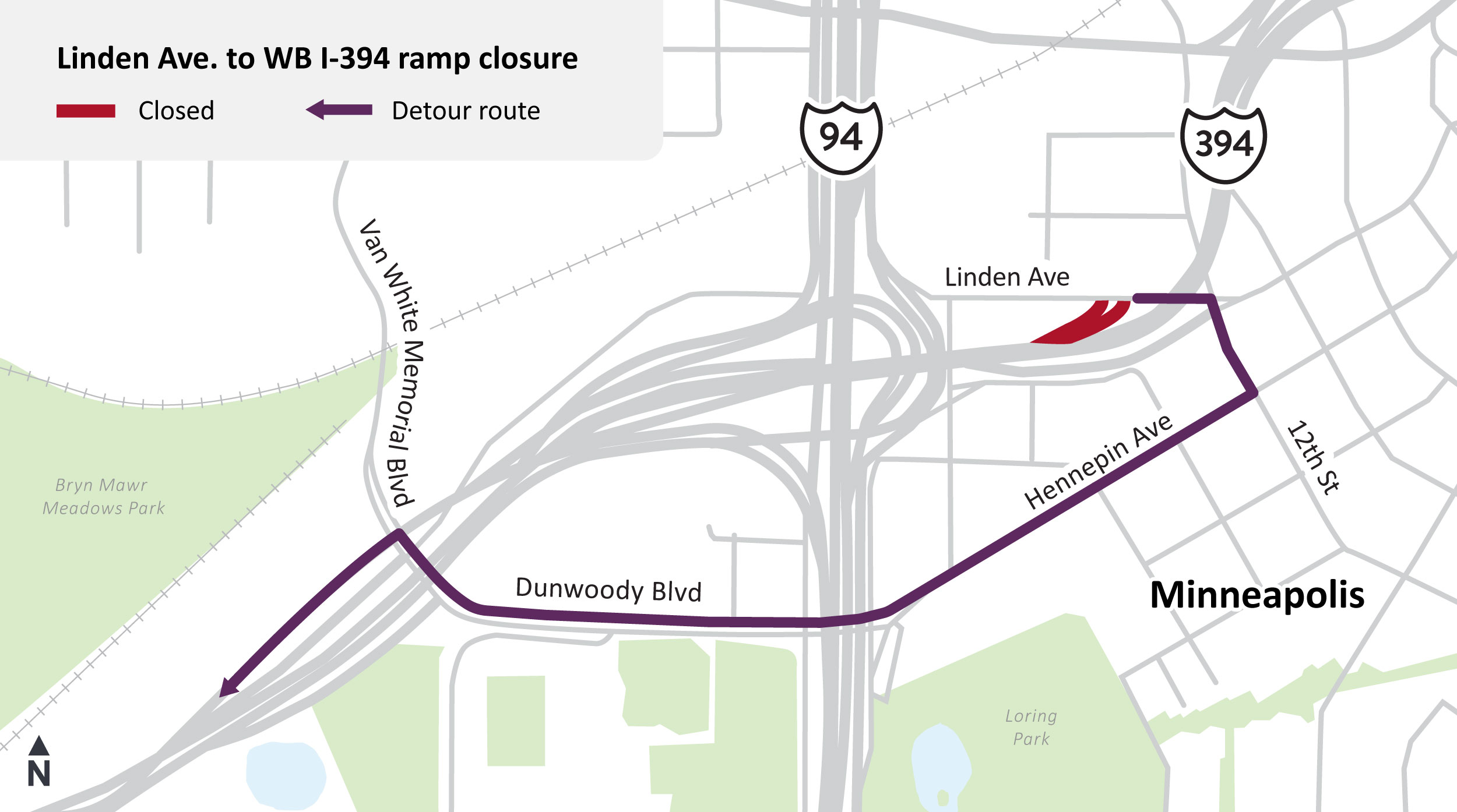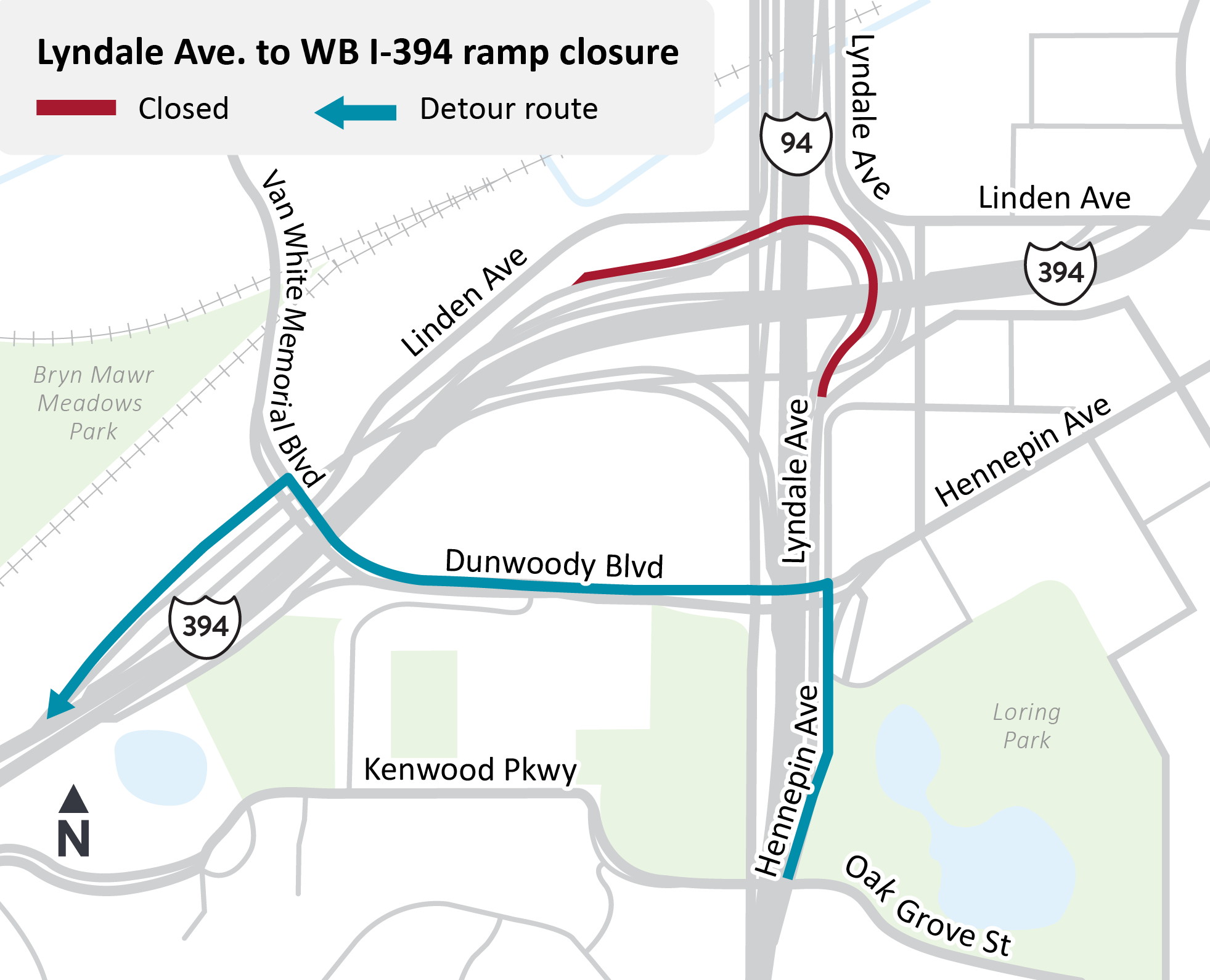 • Expect intermittent lane closures on I-394 in both directions between downtown Minneapolis and Hwy 100